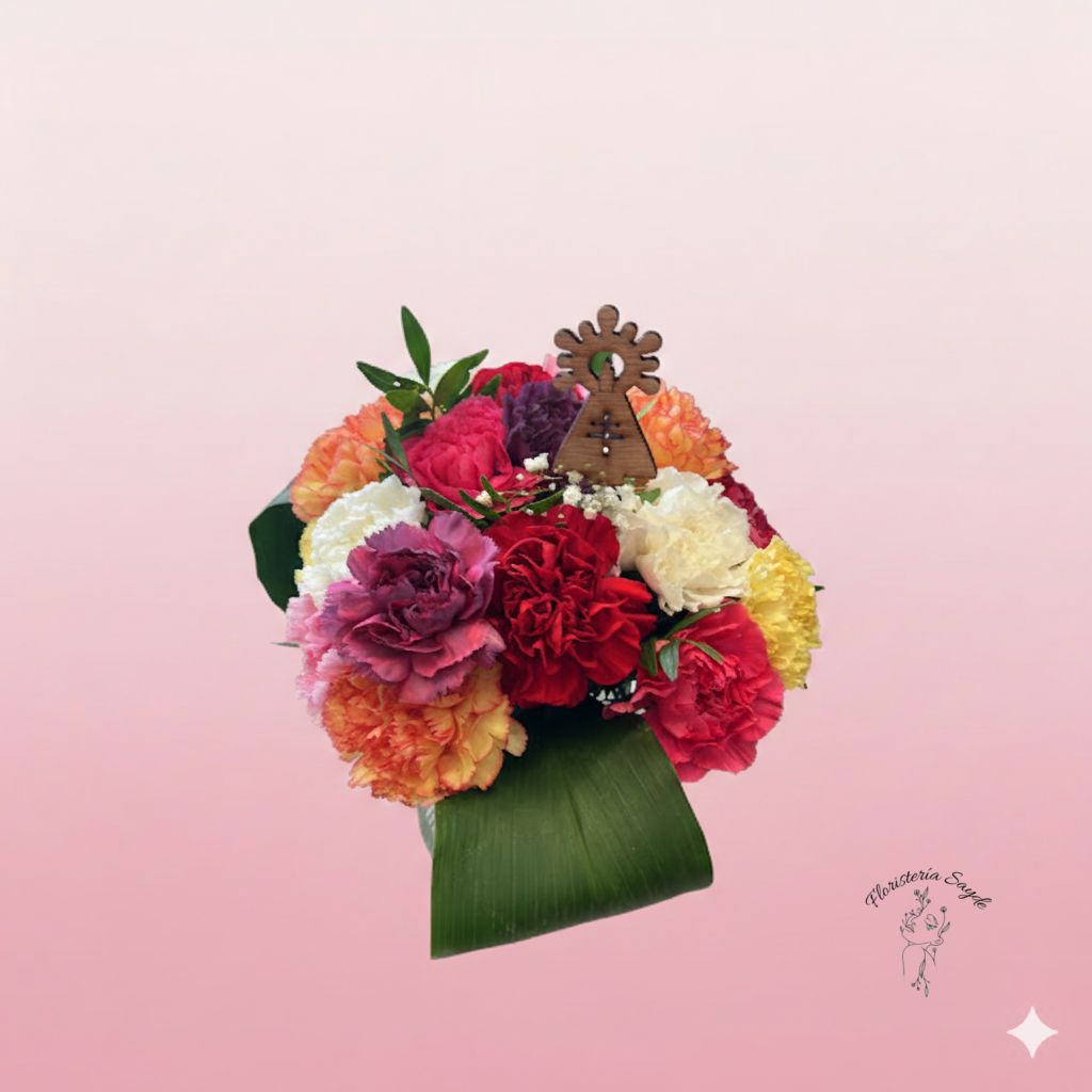 En un día donde millones de flores son depositadas, llevar un ramo de claveles Ofrenda del Pilar personalizado marca la diferencia. El detalle de madera que incorporamos no solo es un adorno; es un recuerdo que muchos oferentes deciden conservar tras la entrega de las flores. Es la fusión perfecta entre el arte floral y la artesanía tradicional, pensada para quienes viven la fiesta con un sentimiento especial.