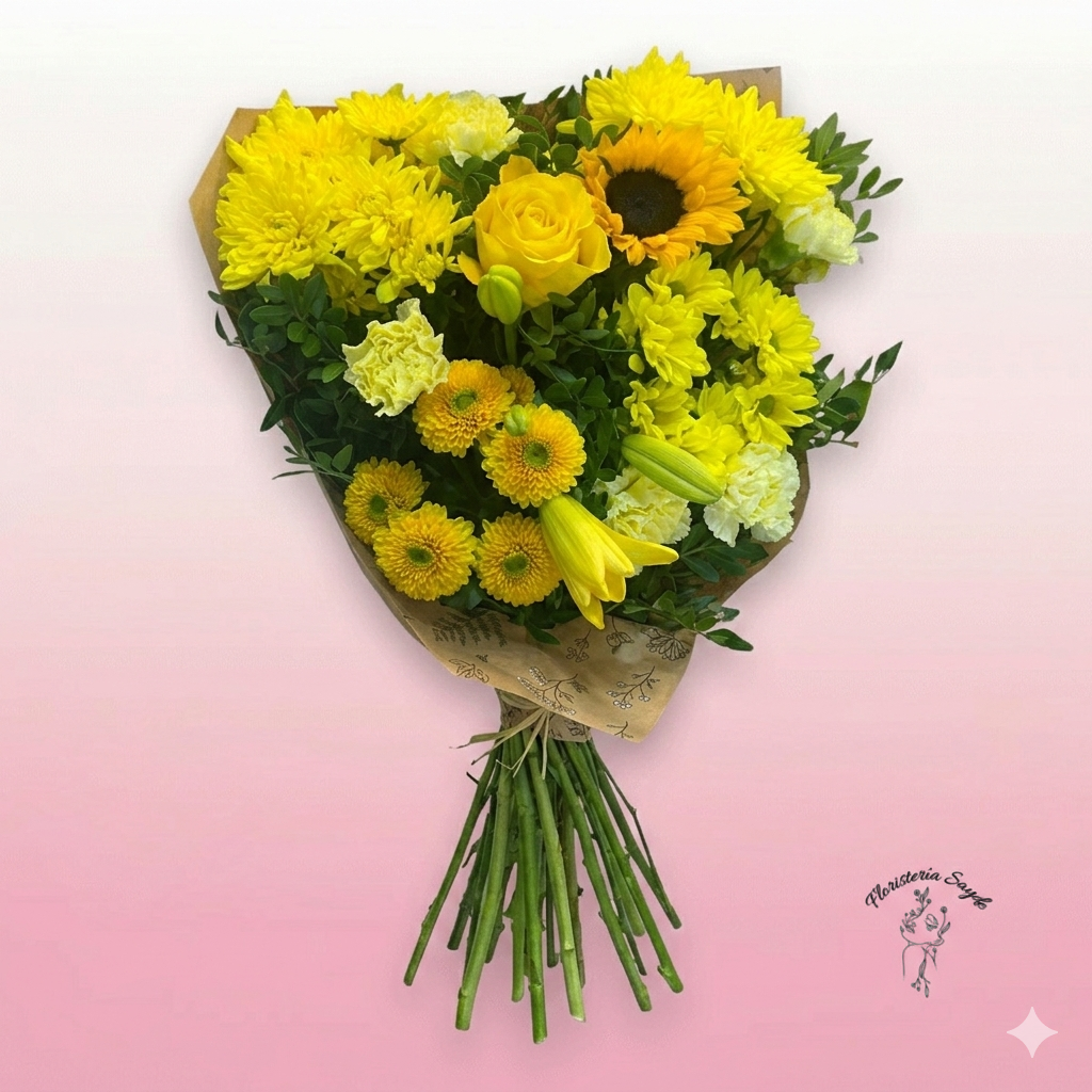 Ilumina cualquier espacio con nuestro ramo silvestre flores amarillas. Este vibrante arreglo incluye margaritas, crisantemos, lilium, rosas, girasoles y claveles, creando una combinación llena de energía y frescura. Perfecto para regalar en cumpleaños, aniversarios o para alegrar el día de alguien especial. En Floristería Sayde, elaboramos cada ramo con flores frescas de la mejor calidad, garantizando un diseño único y duradero que aportará vitalidad y color a cualquier rincón.