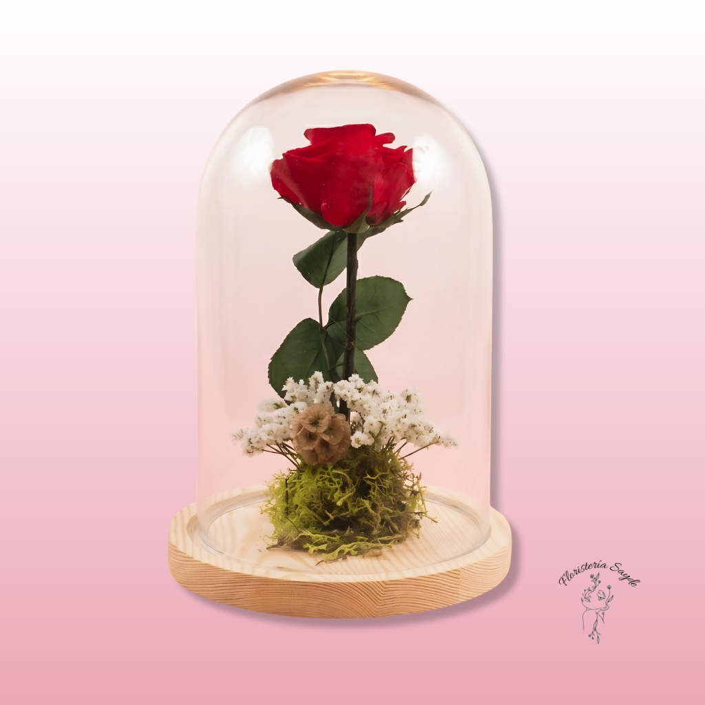✅ Cúpula de Vidrio con Base de Madera: La cúpula transparente no solo protege la rosa y sus decoraciones, sino que también la realza, dándole un toque sofisticado y elegante. La base de madera aporta un estilo rústico y cálido, perfecto para cualquier espacio.