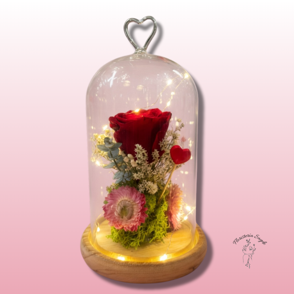 Esta rosa preservada en cúpula es la máxima representación del amor que trasciende el tiempo, un regalo diseñado para aquellos que buscan materializar un sentimiento eterno en una pieza de arte floral única. En Floristería Sayde, entendemos que hay momentos en la vida que merecen ser inmortalizados, y nada captura mejor esa esencia que una rosa natural que conserva su frescura, color y delicadeza sin necesidad de cuidados constantes. Este arreglo no es solo un detalle decorativo; es una ventana a un mundo de fantasía y romanticismo que permanecerá intacto en el hogar de quien lo reciba.
